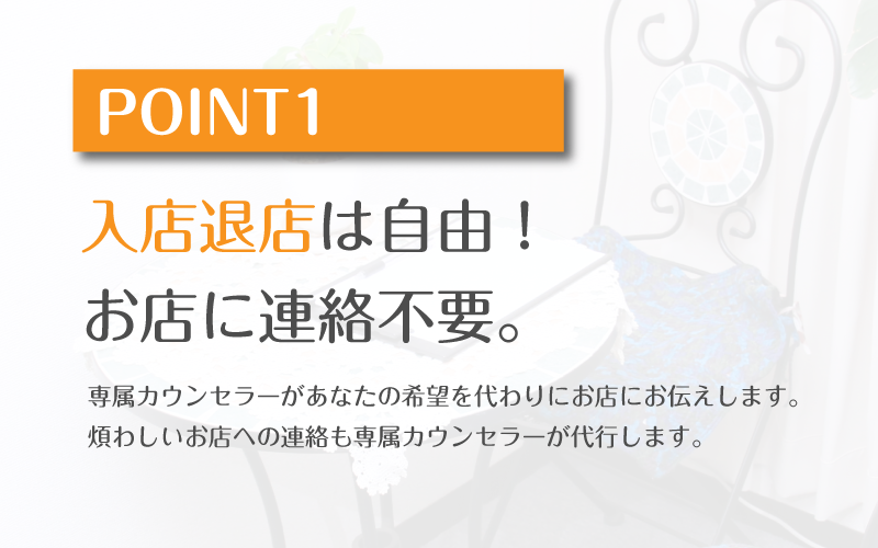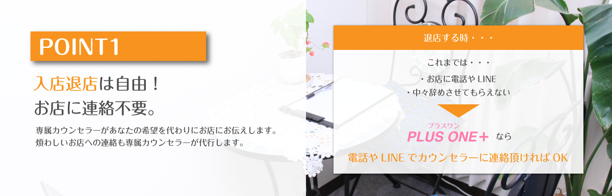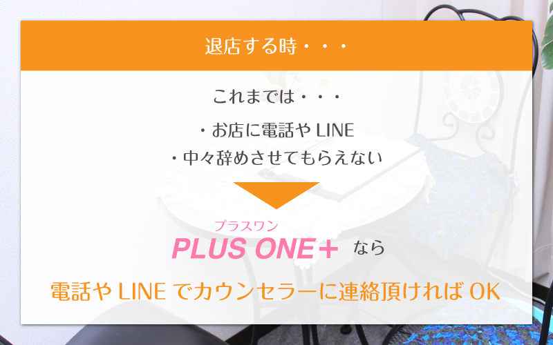 お店を辞めたい時に、言いづらい部分がありました。それをプラスワンのカウンセラーさんが代りに伝えて頂きスムーズに退店できました。