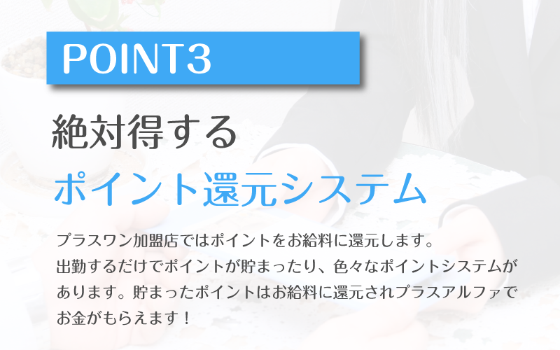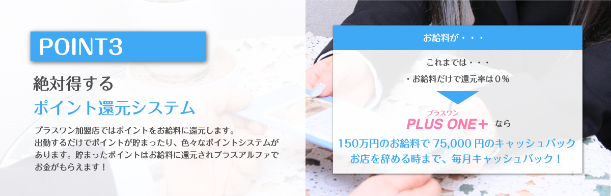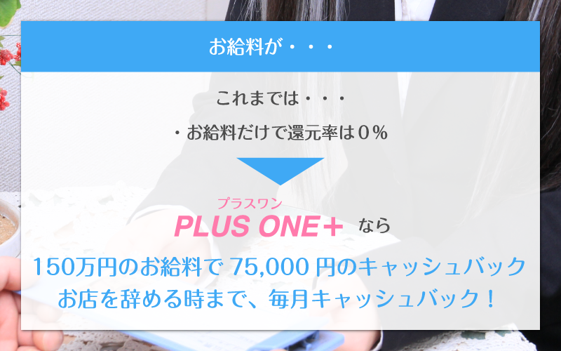 プラスワンを利用したら、出勤日数や写メ日記など、自分が努力した分は、プラスアルファのボーナスとして還元されて嬉しかったです。